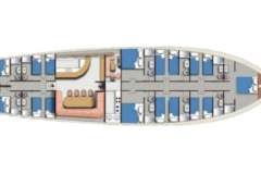 The sailboat features The Aegean Clipper has been designed with 11 cabins to accomodate 22 passangers in mind, her successful cabin charter service has been proven to be a quality service and many repeat customers, full of waters toys and amenities, she offers crewed yacht charter service to large group of friends and family as well as corporate yacht charter in Turkey. engines and a generator.