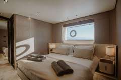 Master Suite located on main deckThe suite includes a king size bed with double wardrobe and a walk in wardrobe; and ensuite facilities that features a large walk in shower and vanity unit.The extraordinary views through the full height windows on both sides of the master suite create the incomparable sensation of being completely at one with the sea.