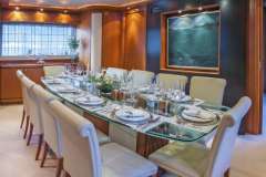 The motor yacht features Engines: 2 x 2775HP MTU Generators: 2 x 100Kw Kohler engines and a generator.