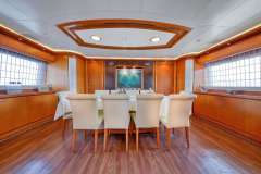 ARIELA is classified as a superyacht. The prominent section of the yacht, inviting aft deck, leads to the attractive and sleek main salon. The main saloon is a friendly space with an abundance of seating areas and boasts a number of entertainment options. 6 elegant cabins are thoughtfully spread out to allow for comfortable access and private setting.