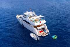 Offered by DMA Yachting, the astonishing charter yacht ASTARTE is a 82 ft motor yacht. The most appealing features of ASTARTE are her absolute comfort and culinary experience. ASTARTE spends the summer season in Turkey. She was delivered by the ship builder Ferretti in 2007. A comprehensive refit was delivered in 2023. The well-planned yacht layout features 4 generous cabins and easily accommodates a maximum of 9 guests.