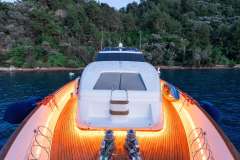 BLUES is classified as a superyacht. The key part of the yacht, expansive aft deck, elegantly connects to the attractive and sleek main salon. The main saloon is a comfortable space with comfortable seating and entertainment areas and enables a number of media entertainment options. 5 tasteful cabins are purposefully laid out with vison for maximum room, access, comfort and privacy.