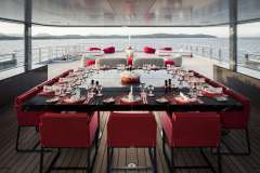 BOLD is classified as a superyacht. The key part of the boat -spacious aft deck, continues to the meticulously composed main saloon. The main saloon is a friendly space with comfortable seating and entertainment areas and enables a number of media entertainment options. 8 elegant cabins are laid out for maximum privacy and comfort.