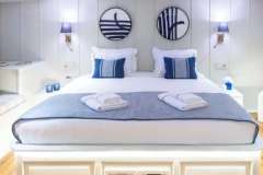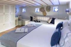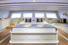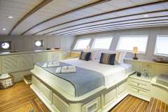 6 cabins; 2 master, 2 large double, 2 large triple cabins, all en-suite.What is the cabin arrangement of CAUSTIC?