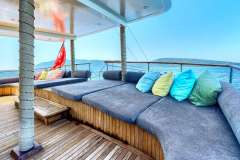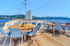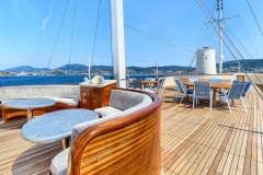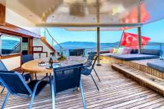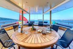 ELARA 1 is classified as a superyacht. The prominent section of the yacht, expansive aft deck, leads to the the heart of the yacht - the main saloon. The main saloon is a well-design space that is well-equipped to shield from the elements in comfort and enjoyment and enables a number of media entertainment options.