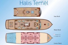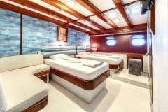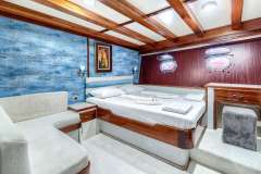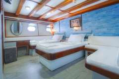 24 guests in 12 very spacious cabins (6 double king size bed and 6 twin beds), all in lower deck.