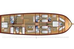Introduced by DMA Yachting, the breathtaking charter yacht GOZDEM THE ONE is a 85 ft sailboat. The main attractions of GOZDEM THE ONE are her most appealing features and fantastic layout. GOZDEM THE ONE spends the summer season in Turkey. She was delivered by the famous yacht builder Bodrum Shipyard in 2022. The ingenious yacht layout features 4 cozy cabins and easily accommodates up to 9 guests.