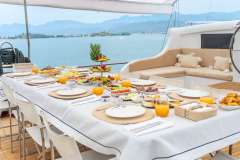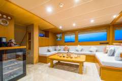 -Saloon with A/C, bar, seating area for 10 guests-1 aft master cabin with queen size bed, bathroom, A/C, safe box