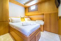 -2 port and starboard identical twin cabins with beds, bathroom, A/C, safe box
