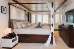 1x Master suite (bed dimension 200cm x 180cm) on the main deck with separate HIS and HER ensuite bathrooms with showers, office, and walk-in closet. The balcony of the master’s suite is furnished with comfortable chairs and a coffee table, making it an ideal site for exclusive breakfasts by the sea.The overall dimension of the Master Suite: 43 sqm