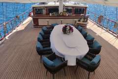 6 Master cabins , 5 with king side double bed and 1 with twin single beds. En-suite bathroom, fully air-conditioned. Huge mid-ship dining area. Large sun deck.What is the cabin arrangement of MARE NOSTRUM?