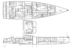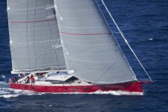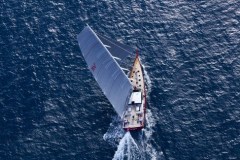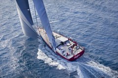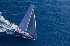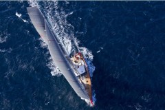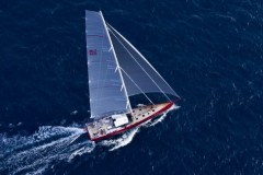 Her mast is 47m the water and she has 9 ton water ballast tanks each side, a short cord performance lifting keel, twin rudders and full carbon construction. Inside NOMAD IV there is spacious and modern accommodation for 12 guests with four crew. The 30.48m yacht was built by the Maxi Dolphin shipyard in Italy.