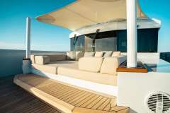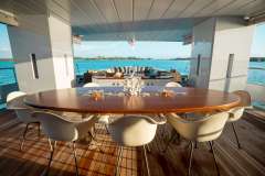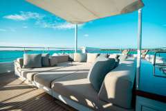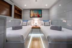 ONLY NOW is classified as a superyacht. The key part of the boat -spacious aft deck, leads to the meticulously composed main saloon. The main saloon is a friendly space with an abundance of seating areas and offers a range of entertainment options. 4 elegant cabins are laid out to allow for comfortable access and private setting.