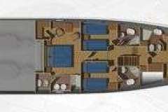 ▪▪ TWIN Cabins: On the two sides of the spacious corridor you will find the two symmetrical identical TWIN cabins. Both can be converted to Doubles with one KING bed each (1.86m width) which can accommodate up to 3 guests, if kids.