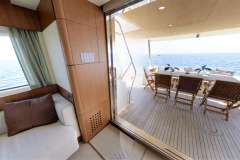 ▪ Modern HARD TOP on fly bridge with electric retractable canvas roof