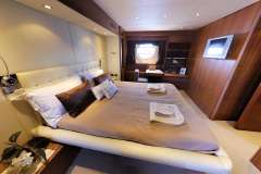 ▪ Spacious and stylish Master cabin covered with expensive cream leathers and wood, walk in closet and two large circular windows offering fantastic sea views