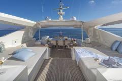 Introduced by DMA Yachting, the astonishing charter yacht RINI V is a 120 ft motor yacht featuring a jetski. The most appealing features of RINI V are her most appealing features and alfresco dining areas. RINI V spends the summer and winter season in Turkey. She was constructed by the well-known ship builder Posillipo in 2009. A well-done refit was completed in 2017. The ingenious yacht layout features 6 cozy cabins and easily accommodates a maximum of 12 guests.