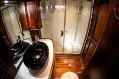 The sailboat features Engines:2 x 360HP Iveco Generators:1 x 32Kw , 1 x 17.5Kw engines and a generator.
