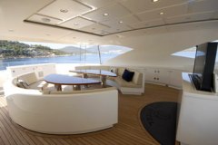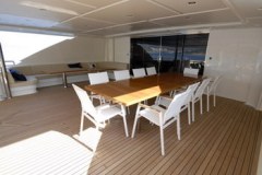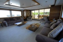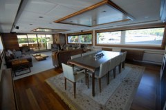 STEEL is classified as a superyacht. The key part of the boat -generously sized aft deck, is right next to the the heart of the yacht - the main saloon. The main saloon is a well-design space to spend time when the aft deck might not be as desirable (at port, private conversations) and serves as a location of entertainment.
