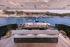THIS IS MINE is classified as a superyacht. The prominent section of the yacht, generously sized aft deck, continues to the well-equipped and inviting main saloon. The main saloon is a well-design space with comfortable seating and entertainment areas and serves as a location of entertainment. 4 comfortable cabins are purposefully laid out for maximum privacy and comfort.
