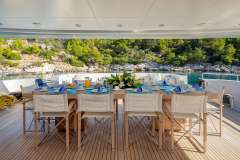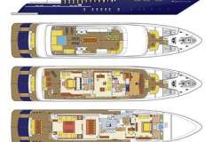 ZALIV III is classified as a superyacht. The key part of the yacht, inviting aft deck, elegantly connects to the well-equipped and inviting main saloon. The main saloon is a gathering space to spend time when the aft deck might not be as desirable (at port, private conversations) and enables a number of media entertainment options. 6 elegant cabins are purposefully laid out to allow for comfortable access and private setting.