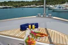 ZOI is classified as a superyacht. The prominent section of the yacht, inviting aft deck, continues to the attractive and sleek main salon. The main saloon is a comfortable space that is well-equipped and inviting for meaningful conversations and boasts a number of entertainment options. 4 welcoming cabins are thoughtfully spread out with vison for maximum room, access, comfort and privacy.